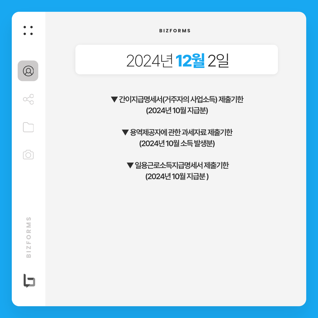 - 간이지급명세서(거주자의 사업소득) 제출기한 / 2024년 10월 지급분