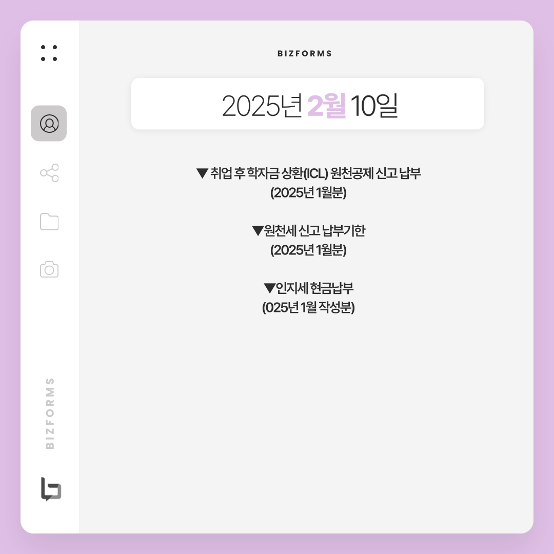- 용역제공자에 관한 과세자료 제출기한 / 2025년 1월 소득 발생분
