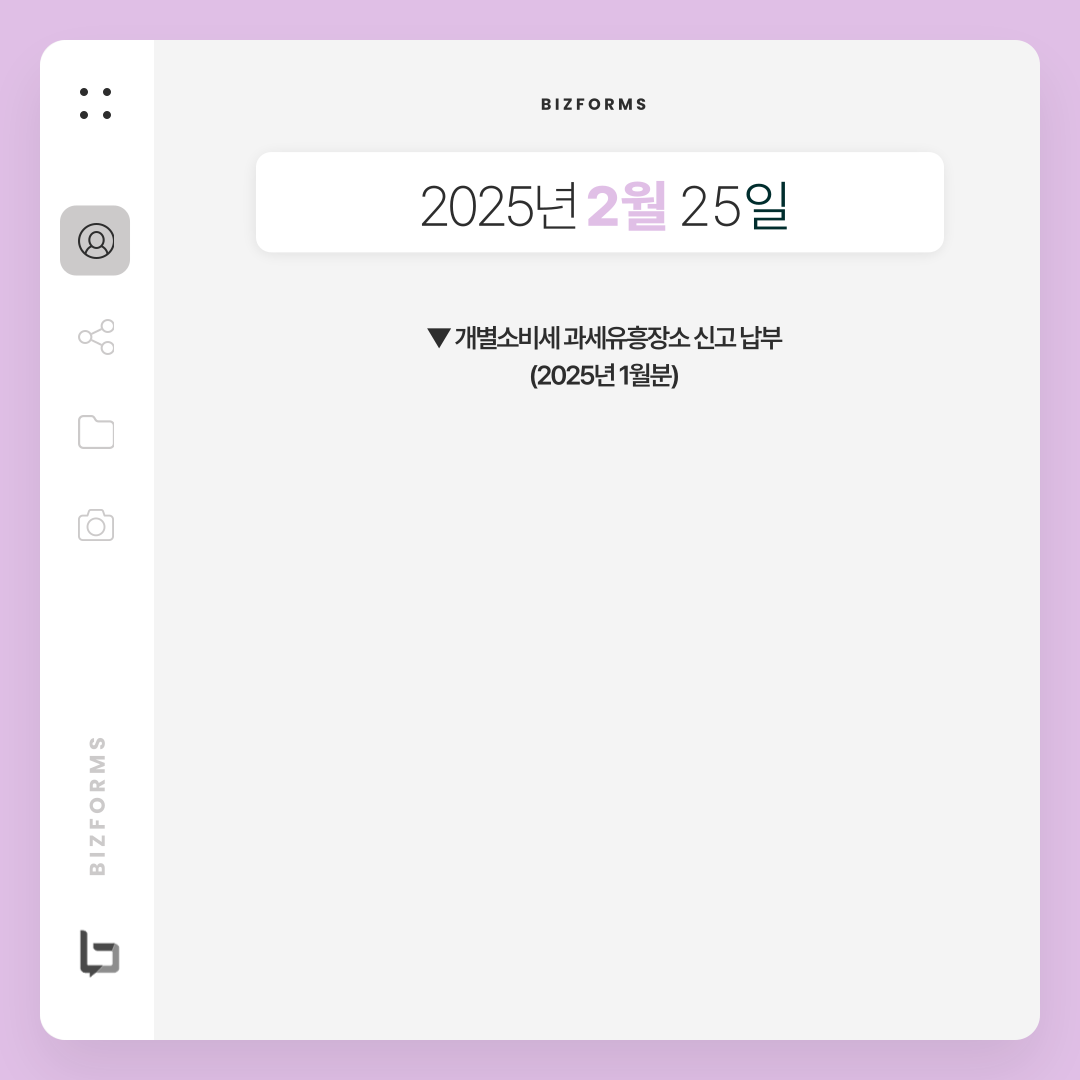 - 개별소비세 과세유흥장소 신고 납부 / 2025년 1월분