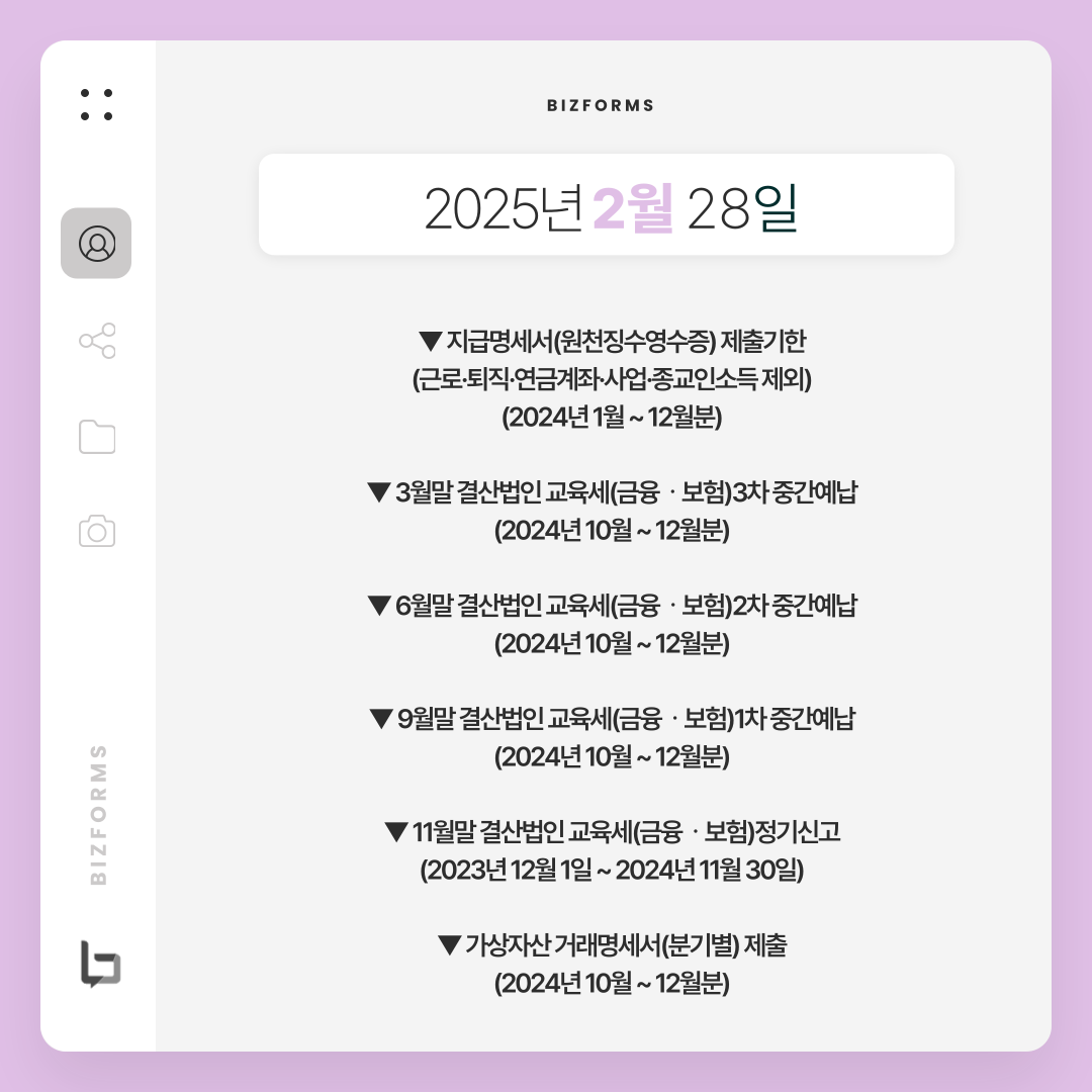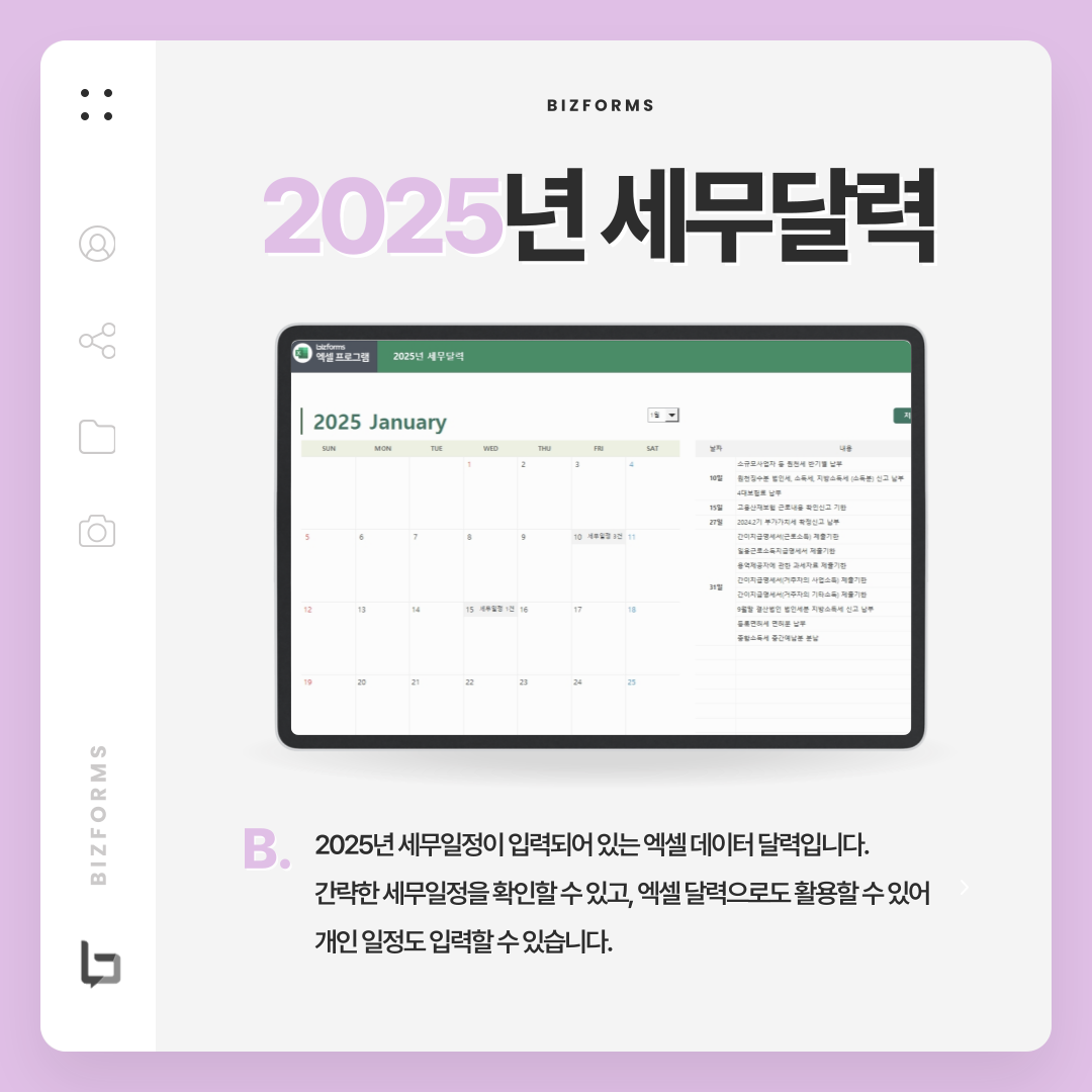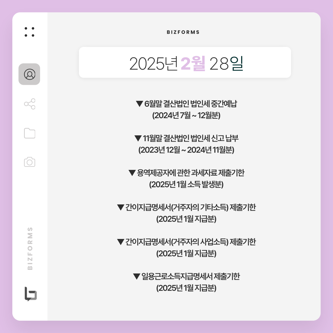 2025년 세무일정이 매월 업로드 될 예정입니다.