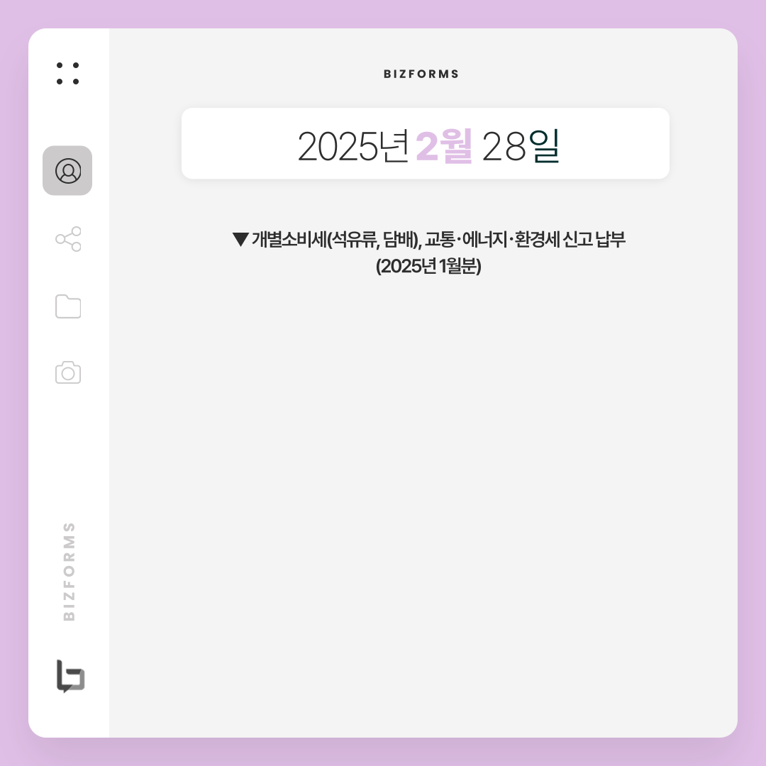 - 개별소비세(석유류, 담배), 교통・에너지・환경세 신고 납부 / 2025년 1월분