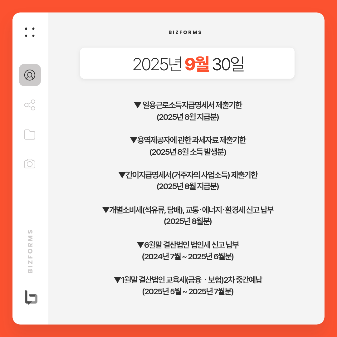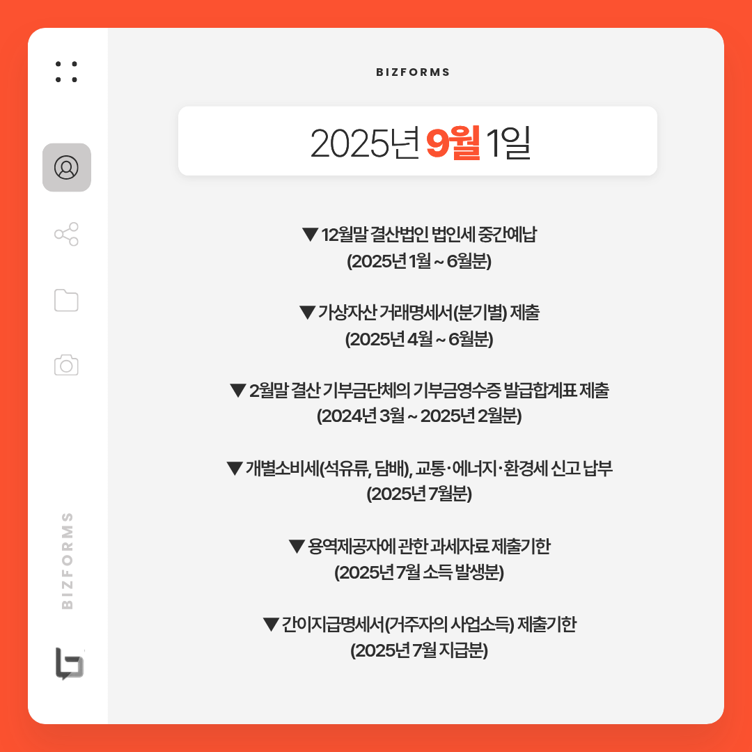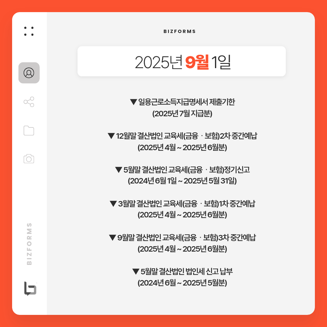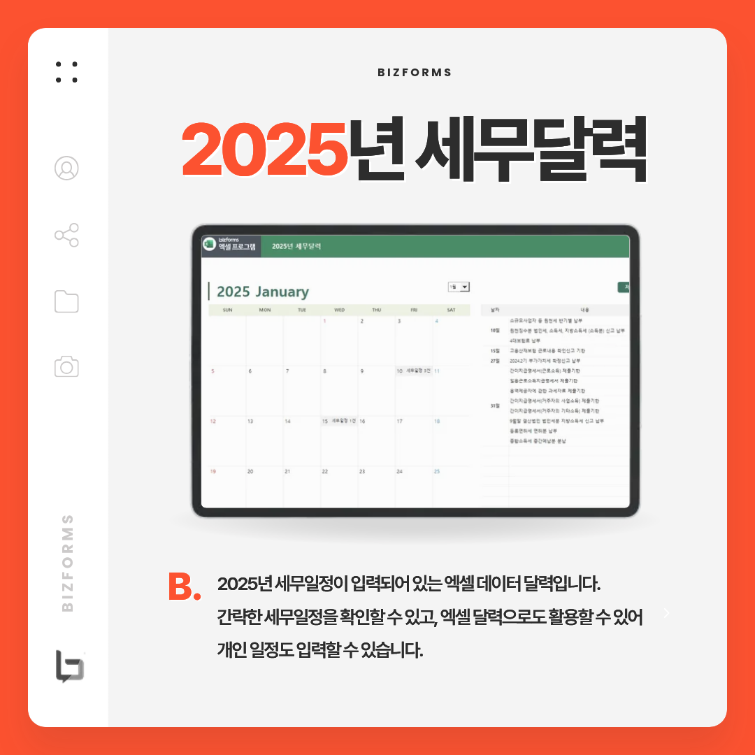 2025년 세무일정이 매월 업로드 될 예정입니다.