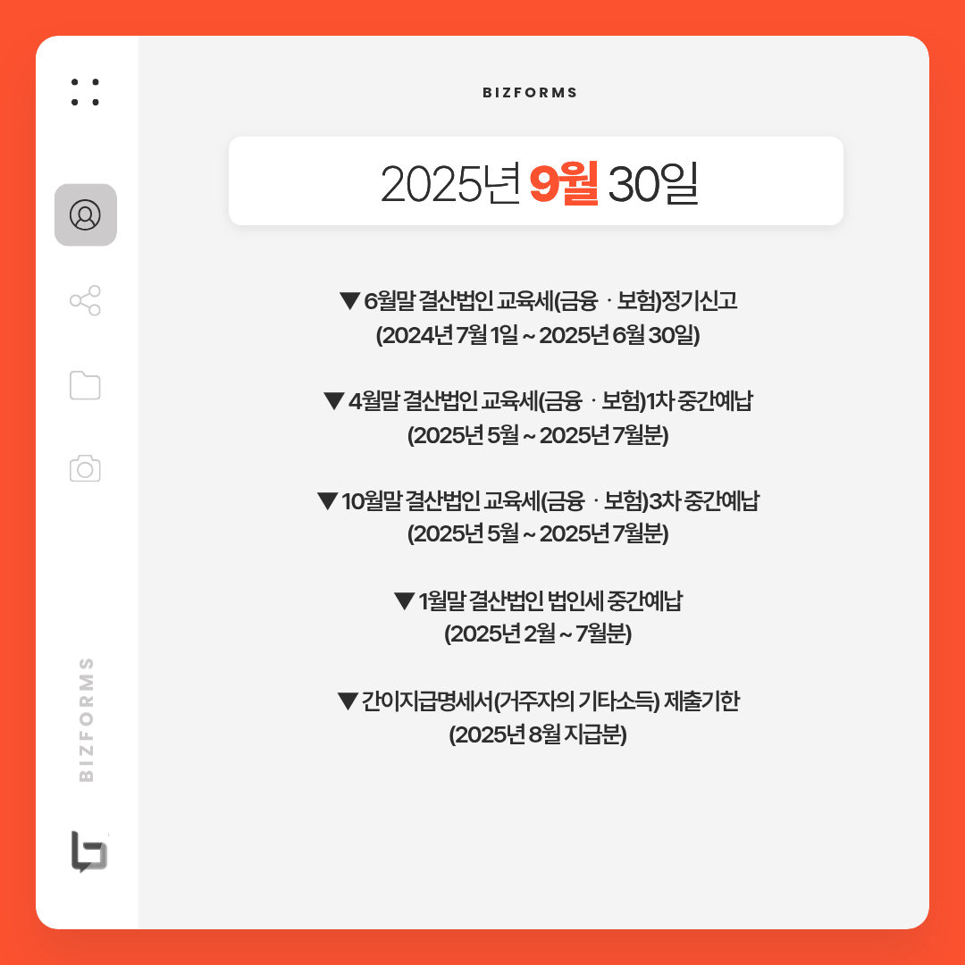 9월말 결산법인 교육세(금융ㆍ보험)3차 중간예납 / 2025년 4월 ~ 2025년 6월분