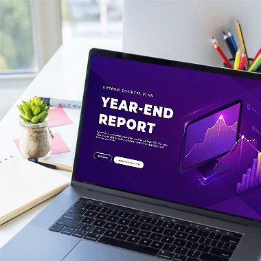 한 해의 성과를 돌아보고 다가올 미래를 준비하는 연말 비즈니스 보고서입니다. 주요 실적 같은 발표에 활용하기 적합한 템플릿입니다.