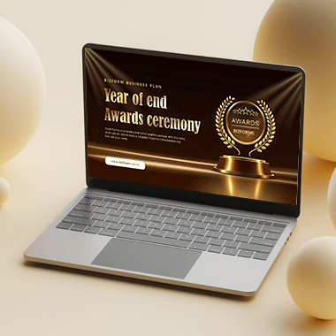 기념하는 순간을 품격 있게 담아낼 수 있는 디자인으로 수상자 발표, 감사 인사, 축하 행사 등 다양한 프로그램을 깔끔하게 표현할 수 있는 템플릿입니다. 특히 금빛 톤과 단정한 구성이 어우러져 연말 행사에도 활용할 수 있습니다.