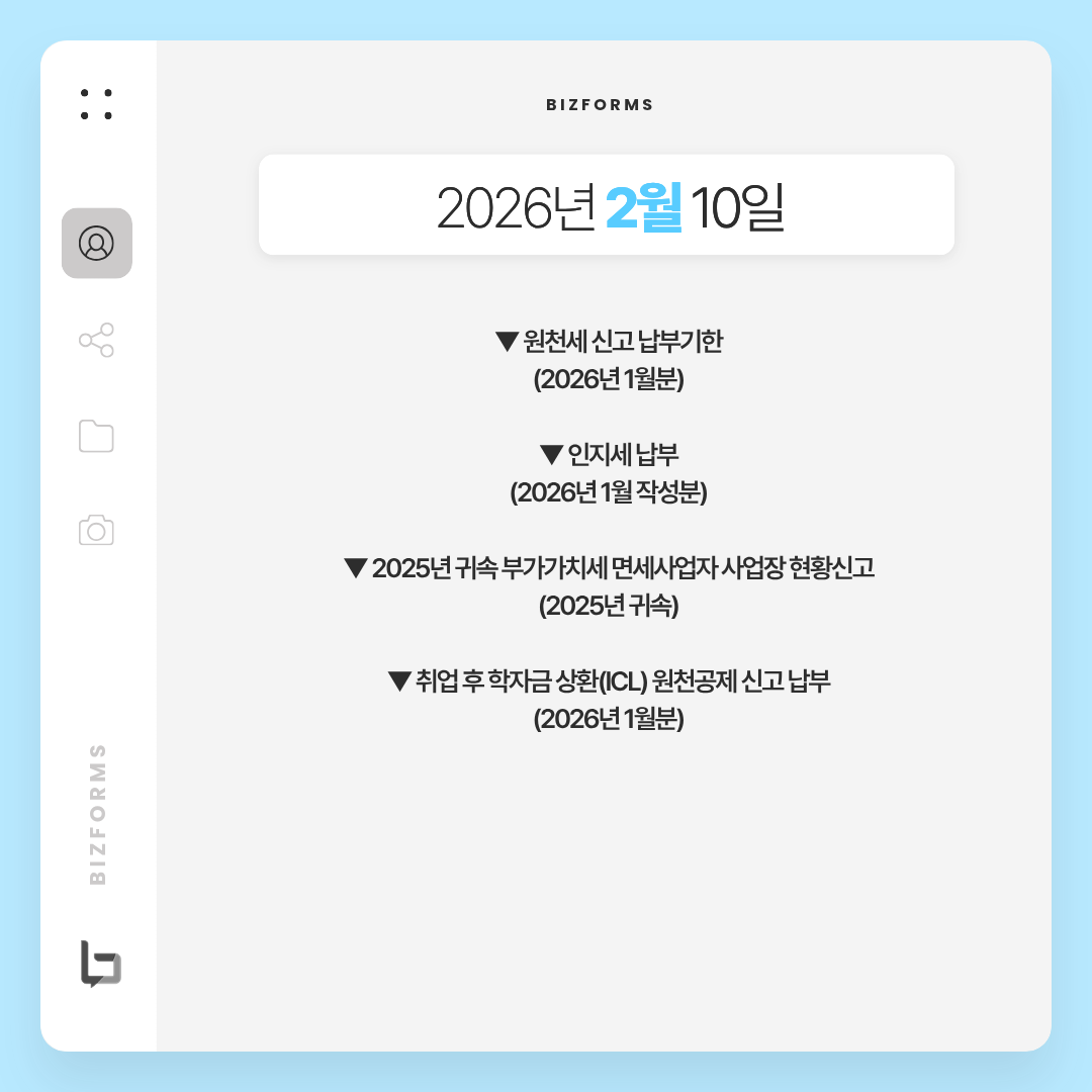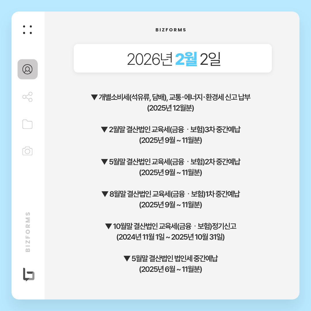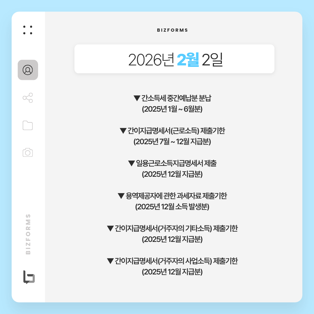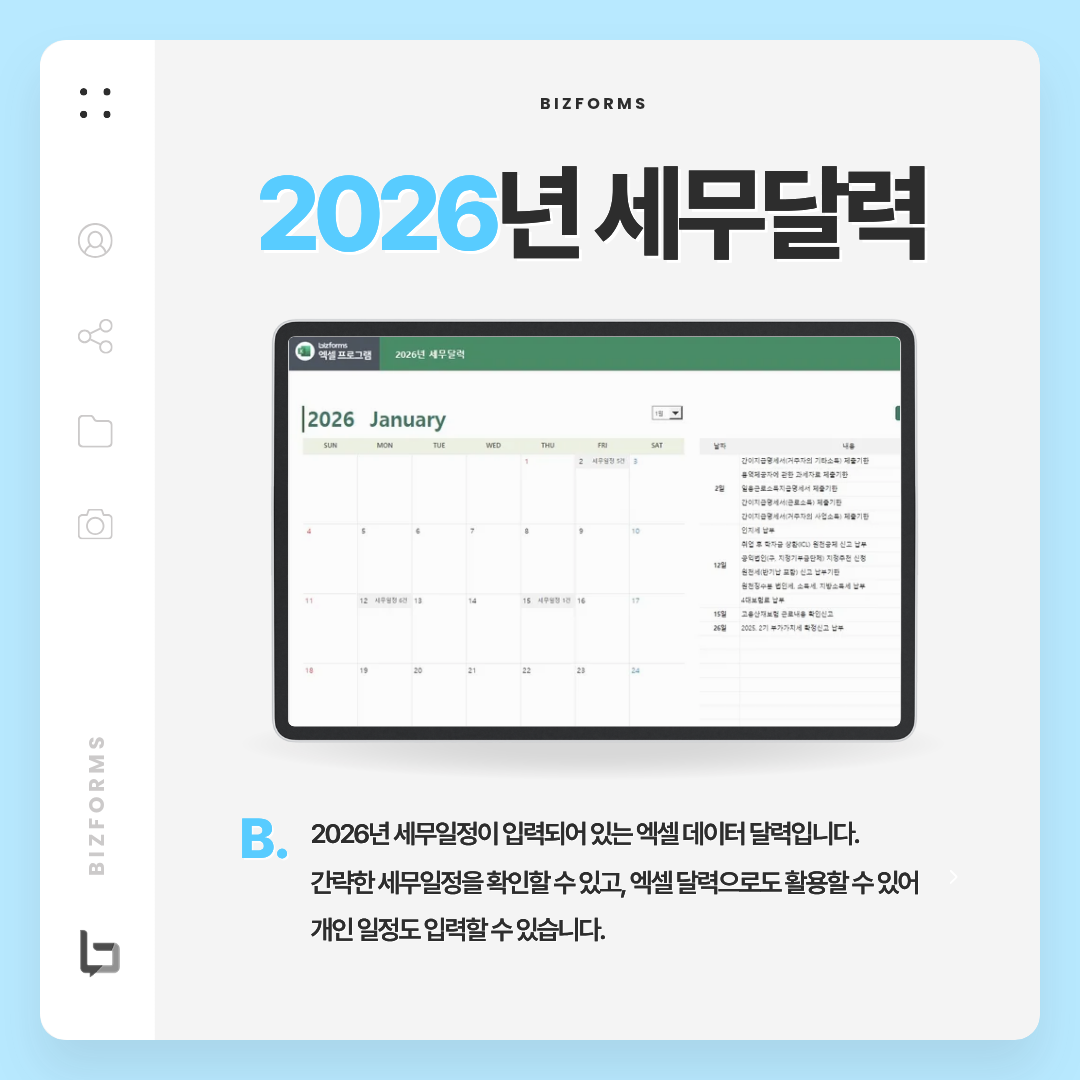 2026년 세무일정이 매월 업로드 될 예정입니다.