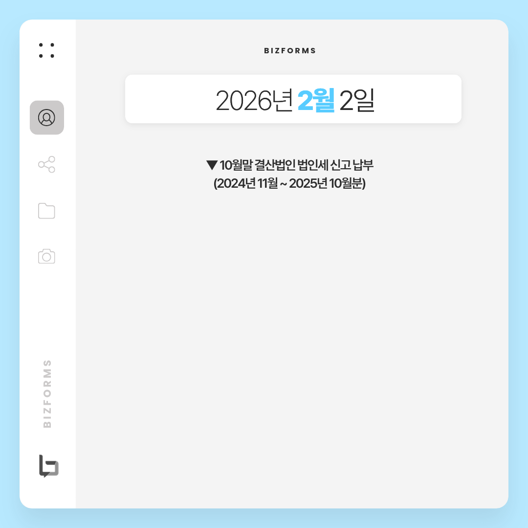 - 10월말 결산법인 법인세 신고 납부 / 2024년 11월 ~ 2025년 10월분