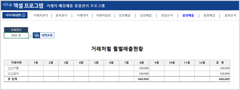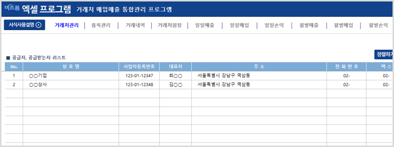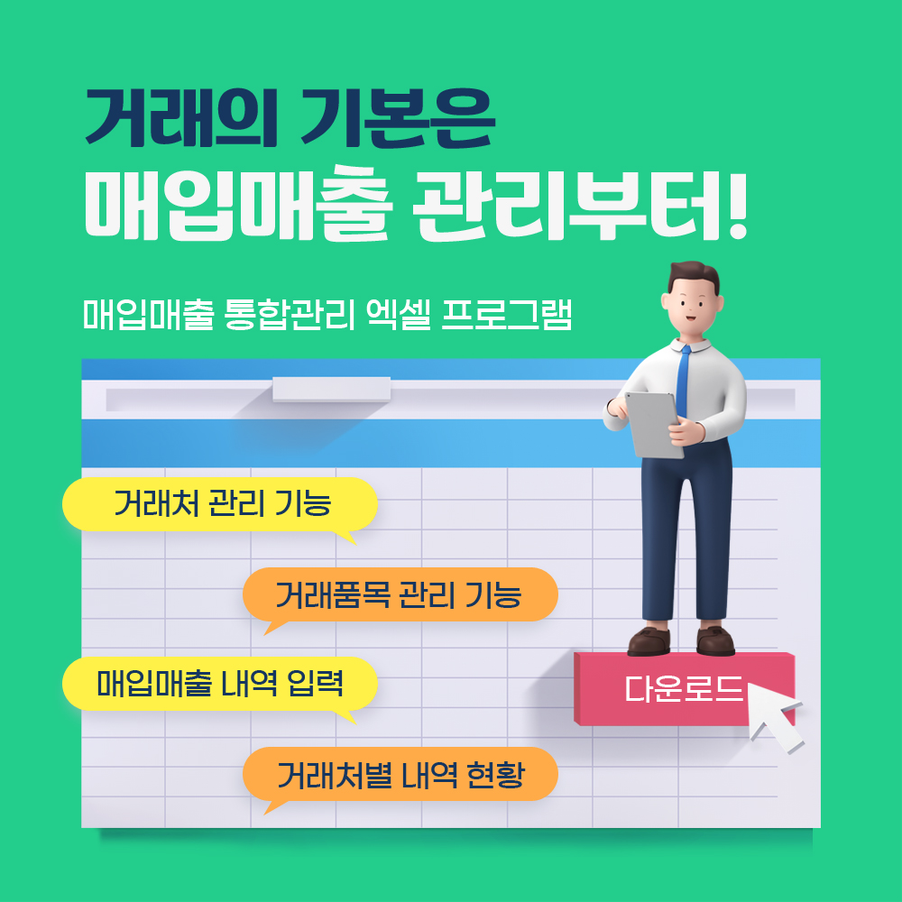 매입매출 관리 프로그램을 활용하면 기본적인 거래처 관리와 함께 발생하는 매입과 매출을 정확하게 기록하고 현황을 한눈에 확인할 수 있습니다.