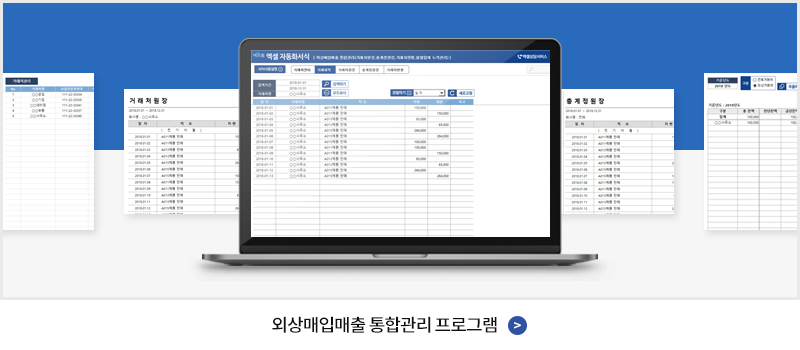 기업 거래를 하다보면 소비자가 물건을 구매하듯 언제나 바로바로 대금을 지불할 수 있는 것은 아닙니다. 상황에 따라 외상매입매출이 발생하는데요. 외상매입매출 역시 엑셀 프로그램으로, 발생한 외상매입매출 내역부터 거래처원장, 총계정원장 양식을 한번에 관리사용 가능합니다.