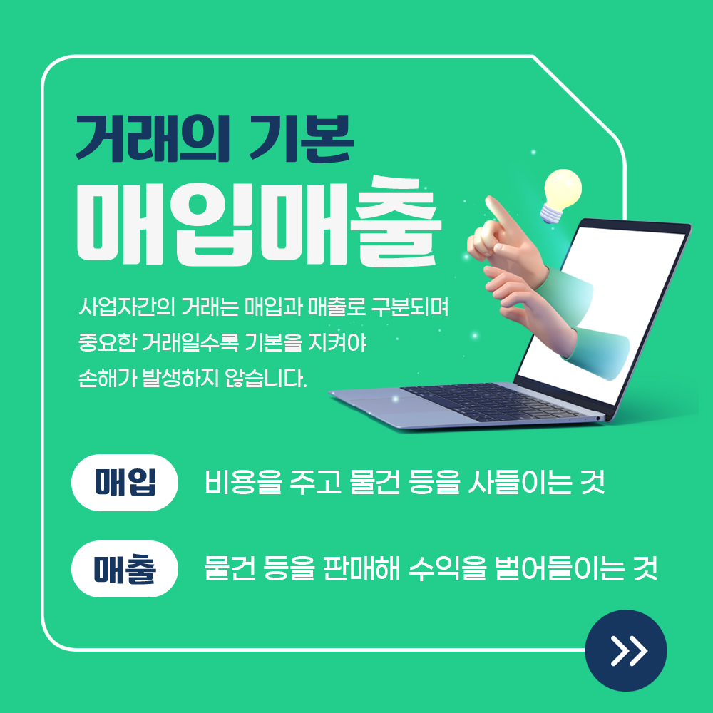 거래처와 거래가 발생하면 매입/매출을 구분하여 발생한 거래내역을 입력합니다.