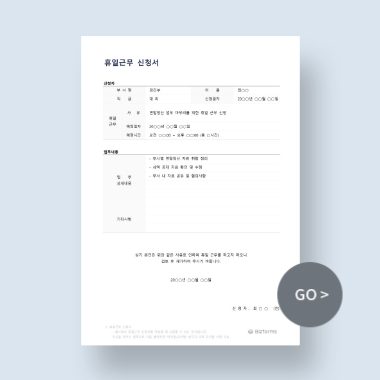 급여관리 프로그램, 근태관리 프로그램, 표준 휴일근무 신청서, 휴가 규정까지 핵심 서식을 한 번에 갖춰, 정확하고 체계적인 휴일근로 관리를 시작해보세요! 💪